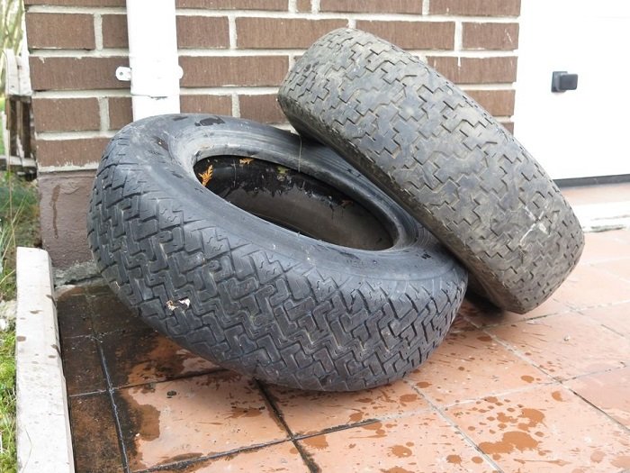 - Para comenzar, toma algunos neumáticos viejos de diversos diámetros. En este caso, se utilizaron 3, pero se puede experimentar con cualquier cantidad. ¡Lo importante es que sepas cómo hacerlo!