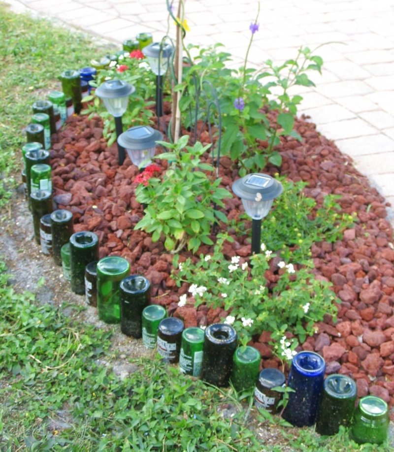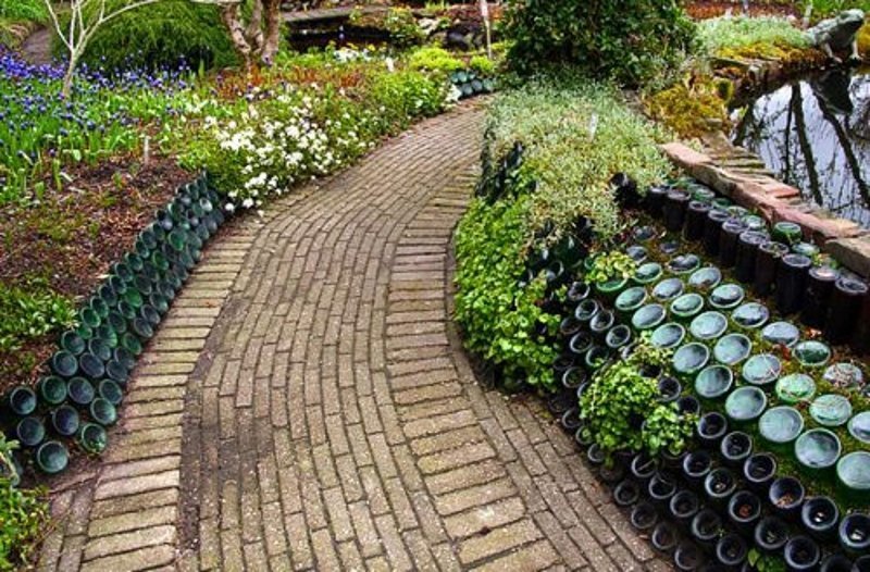 Las botellas de vidrio son hermosas, gracias a sus diferentes colores y formas. Podrías diseñar parterres en forma de flor o verticales, o disponer las botellas en patrones elegantes. En cualquier caso, un tu jardín lucirá genial.
