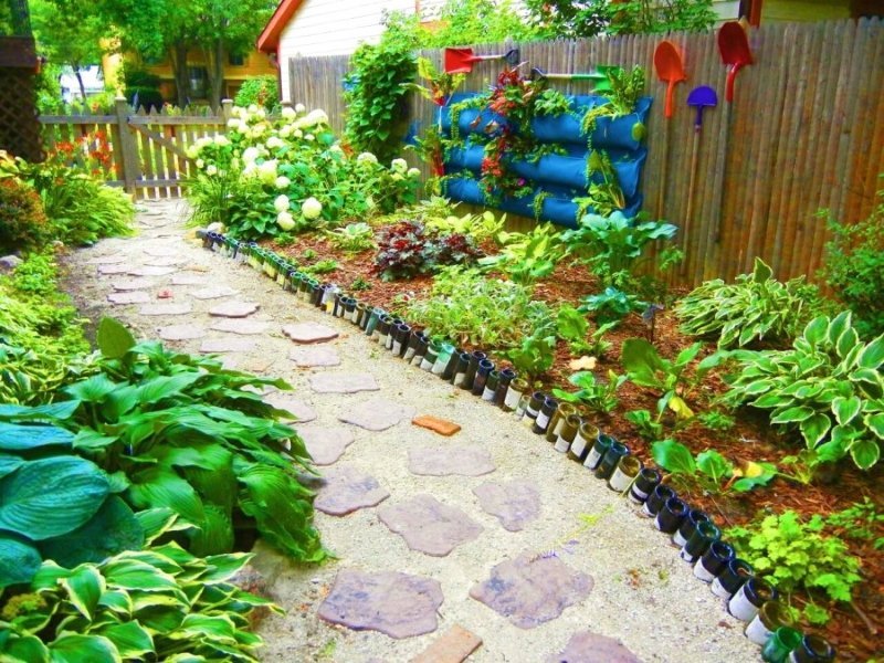 Las botellas de vidrio son hermosas, gracias a sus diferentes colores y formas. Podrías diseñar parterres en forma de flor o verticales, o disponer las botellas en patrones elegantes. En cualquier caso, un tu jardín lucirá genial.