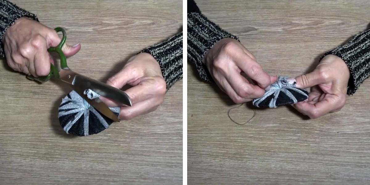 - Corta el resto de la tela y cose el extremo con hilo para asegurarlo bien.