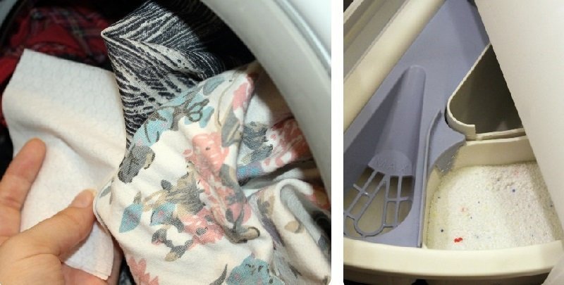 El principio de uso es simple: coloca una servilleta en el tanque de la lavadora cuando cargues la ropa. Uno, si la ropa es ligera, dos, si es de color, y tres, si algo se desvanece definitivamente. Luego selecciona el programa deseado, si te quedas dormido con el detergente, como de costumbre, solo espera…