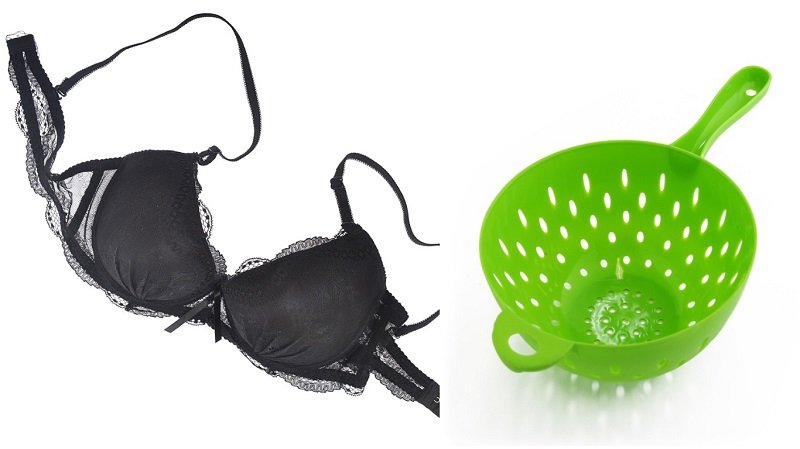 Después de lavar a mano artículos delicados, como sostenes, es conveniente usar un colador normal: coloca cuidadosamente el artículo recién lavado, lo que permitirá que se drene el exceso de agua. Y solo entonces colgar para secar.