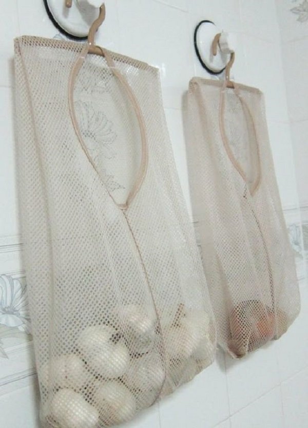 - Una idea maravillosa para almacenar ajo o cebolla.