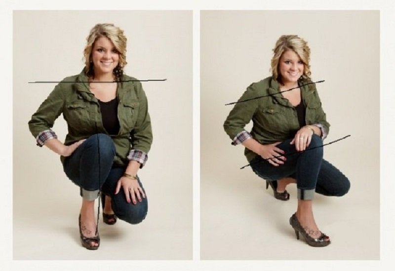 - Con las piernas, la situación suele ser la misma que con las manos. No sabemos cuál es la mejor manera de colocarlas para que se vean bien en el marco. Dobla ligeramente la rodilla de la pierna más cercana al fotógrafo.