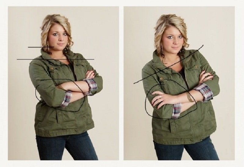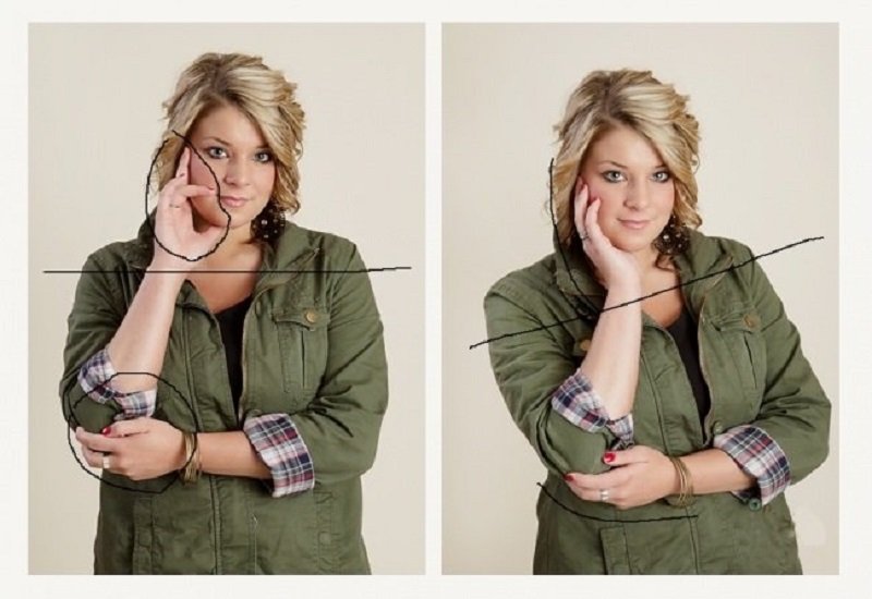 - No mires directamente a la cámara. Todas las personas tienen rostros asimétricos, y esto se vuelve más notorio cuando se mira de frente. Además, un pequeño giro se ve más interesante y ayuda a ocultar los defectos de la figura.