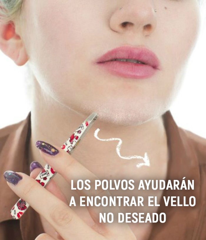 - Es fácil encontrar y quitar el vello no deseado de la barbilla con la ayuda de los polvos.