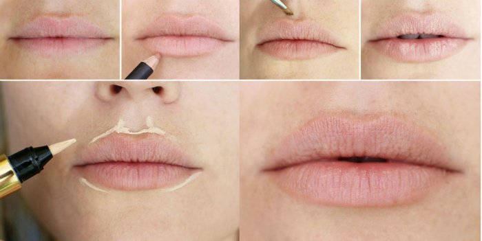 - Para hacer que tus labios luzcan más voluminosos y no llamativos, usa un lápiz que se diferencie del color natural de los labios, siguiendo estos pasos.
