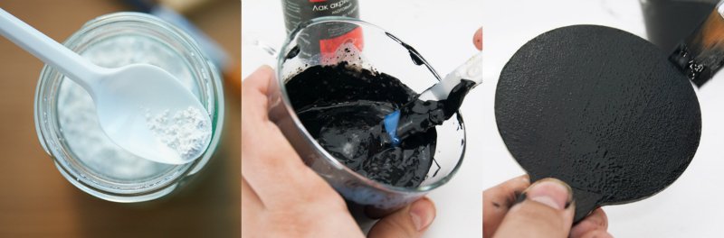 La pintura especial (de pizarra) se puede comprar en las tiendas de materiales de construcción, o puedes prepararla tú mismo. Es una opción adecuada, si se necesita pintar un área pequeña o artículos diminutos. Simplemente mezcla 1 taza de pintura acrílica ordinaria con 2 cucharadas de masilla o lechada para las juntas de azulejos.