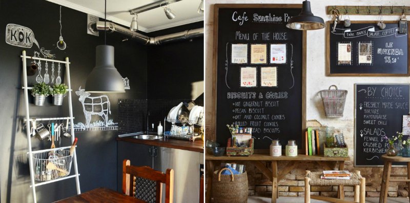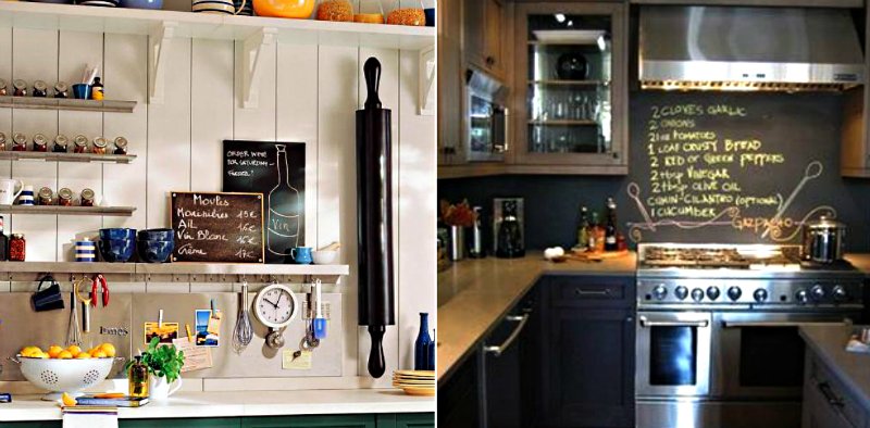 Por cierto, si aplicas dos capas de pintura magnética debajo de la capa de pizarra, además de inscripciones, en la cubierta podrás pegar fotos, recortes con recetas y otros detalles encntadores.