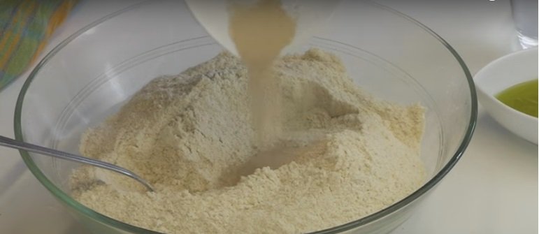 - Primeramente, mezcla la sal con la harina en un cuenco. A continuación, añade la levadura y vuelve a mezclar. Es importante mezclar ambos ingredientes por separado para que no entren directamente en contacto, ya que la sal inhibe la acción de la levadura de panadería.