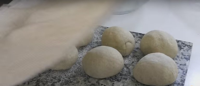 - A continuación, forma una bola con cada porción. Cubre las 8 bolas con un paño y déjalas reposar durante 20 minutos. Durante este tiempo el gluten se ablandará, y será más fácil aplanar la masa.