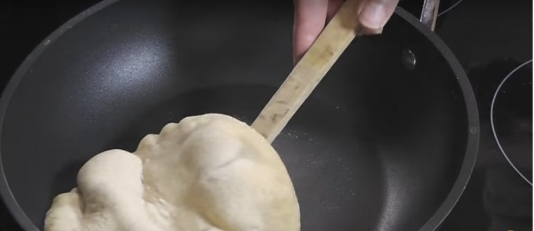 - Una vez aplanada la bola de masa, colócala en la sartén y tápala. La cocción será a fuego suave, durante un tiempo aproximado de 2 ó 3 minutos por cada lado. Cuando aparezcan las burbujas que se forman en la superficie del pan, será el momento de darle la vuelta. Otra opción es voltearlo varias veces. De este modo controlarás mejor el proceso, sobre todo si es la primera vez que haces este tipo de pan. Mientras una se va cocinando, puedes ir estirando otra bola de masa.