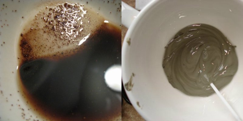 - Arcilla dilúyela con agua, de acuerdo con las instrucciones del paquete. La masa debe quedar con la consistencia de una crema espesa.