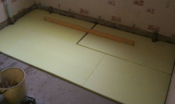 - Luego, cubrió el piso con hojas de poliestireno extruido de 2 cm de espesor.
