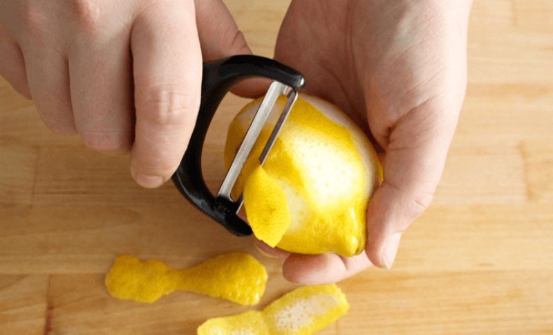 Para preparar este aliño de limón, vas a necesitar 3-4 limones frescos. Lávalos bien. Retírales la cáscara con un pelador, teniendo cuidado de no tocar la piel blanca (esta es muy amarga, así que cuidado).