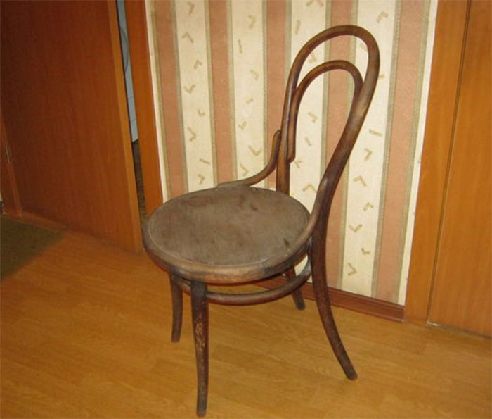 Las manos descansan en la silla, las piernas están detrás, colocadas según el ancho de los hombros. La cabeza y la mirada hacia adelante, el cuerpo no debe estar colgado. Al inhalar, debes doblar los brazos en los codos y bajar el cuerpo. Con exhalación, endereza los brazos y levántate con el sonido «Ha».