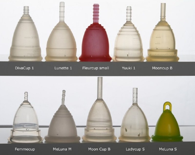 Los fabricantes producen 2 tamaños de copas menstruales: pequeñas (para mujeres de 25-30 años de edad y aquellas que aun no han estado embarazadas) y grandes (para mujeres mayores de 30 años de edad y las que ya dieron a luz). A menudo, comodidad de uso copas menstruales depende puramente de la correcta elección del tamaño y el material del producto.