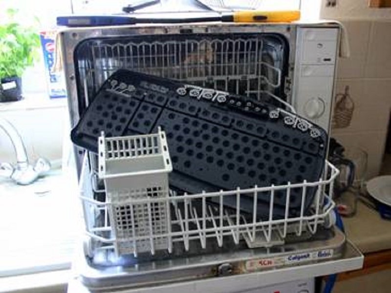 - Si desmontas el teclado, éste se puede lavar en el lavavajillas. Para ello, es necesario separar la parte superior del dispositivo. Ponlo en la máquina y elige el modo de lavado suave.