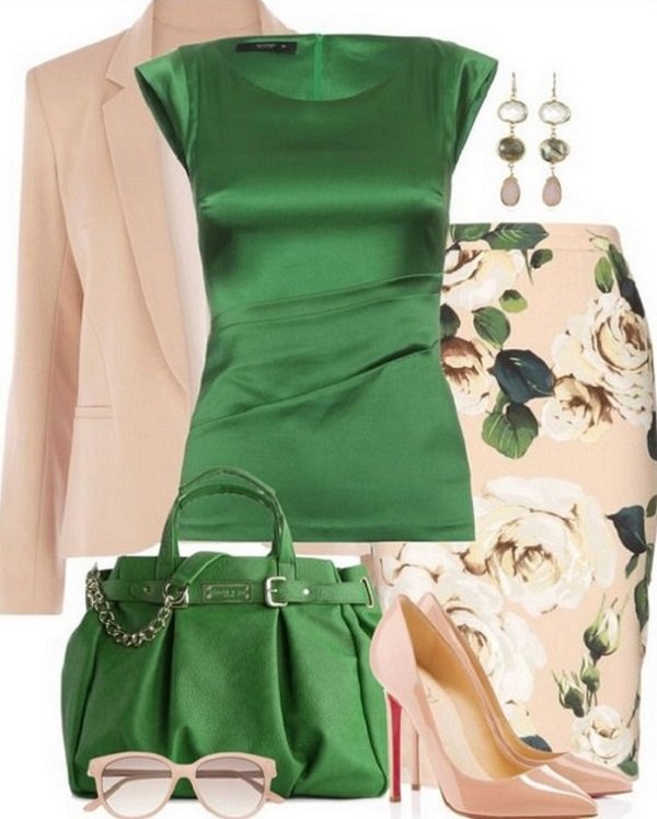 - ¡Una falda con estampado floral requiere acentos brillantes y frescos! Añade una blusa de colores y un bolso con las verduras más jugosas, y no te arrepentirás. ¡De todos los lados lloverán cumplidos!