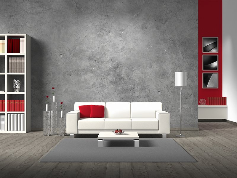 Hoy está de moda dejar las paredes de la habitación sin pintar. Ten cuidado de que el yeso concreto o decorativo no se vea demasiado áspero.