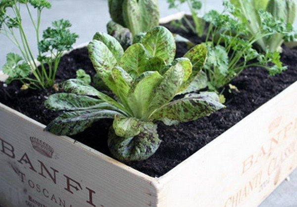 - Haz un pequeño jardín en el balcón con una caja de madera.