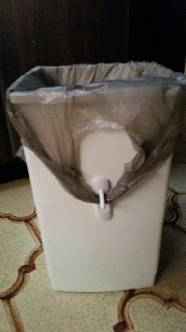 - En las tiendas se venden pequeños ganchos de plástico con dorso autoadhesivo. ¡Compra un par de ellos y pégalos en el contenedor de basura para que la bolsa de basura no se deslize!