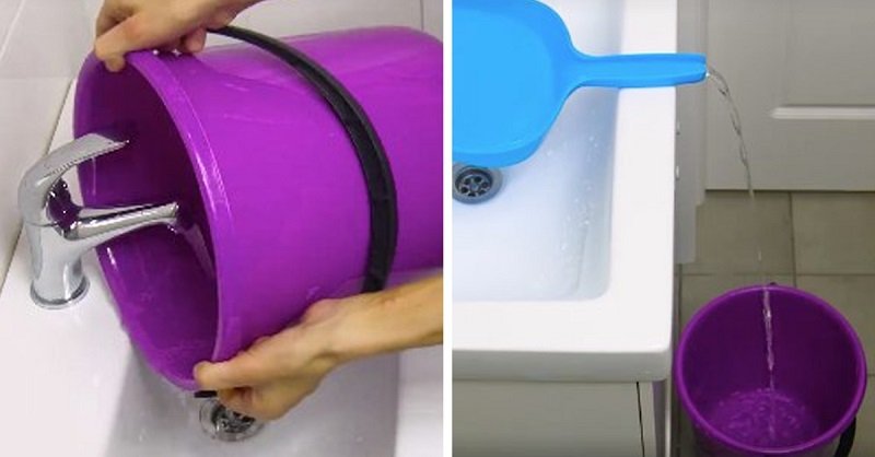 Digamos que necesitas llenar un cubo de agua con urgencia, pero alguien se está bañando en la ducha, o no se puede acceder a ella por otras razones, o no tienes una manguera. Para obtener el agua del lavabo rápidamente y sin dañar el fregadero, utiliza el recogedor de polvo habitual. ¡Todo ingenioso es simple!