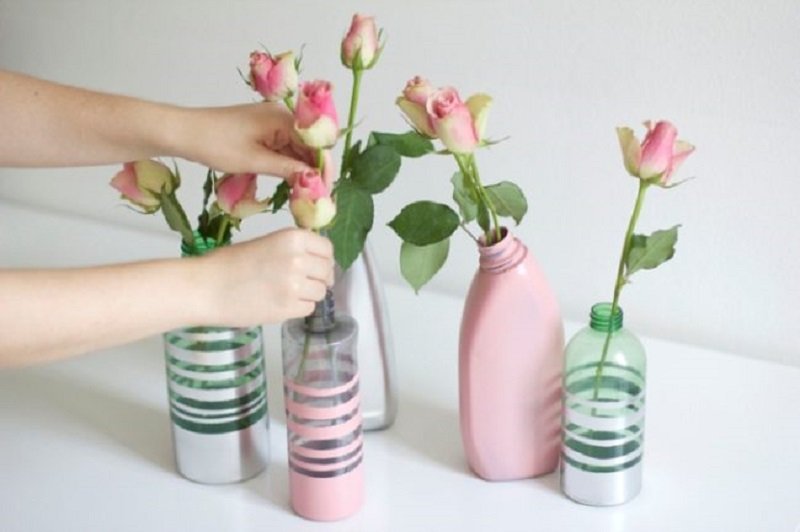 Si no dispones de un jarrón a mano en la casa, puedes crearlo con tus propias manos a partir de un recipiente de detergente.