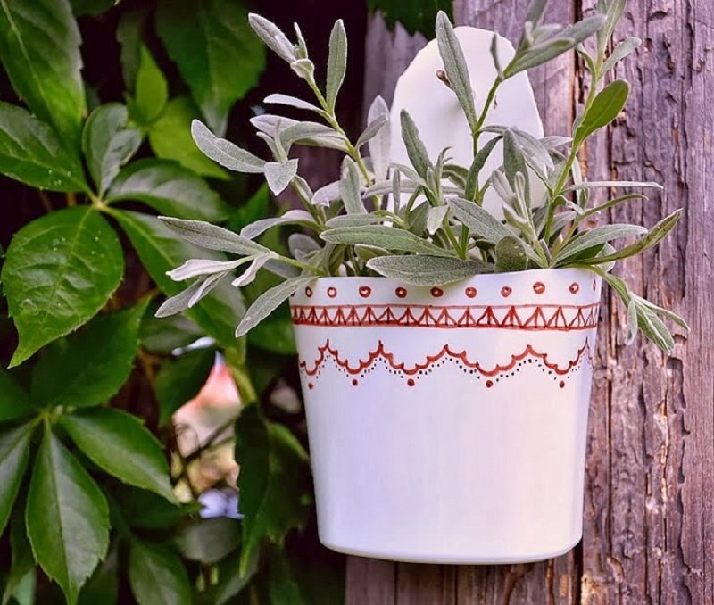 Primero dibuja un contorno en la botella, luego corta con cuidado el producto. Después de eso, puedes decorar a tu gusto. En tu casa de campo, tal maceta vendrá de maravilla para todas tus plantas. Aquí se combina el ahorro con el uso racional de los residuos.