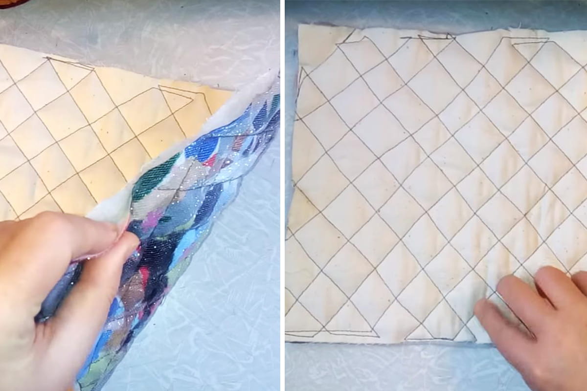 - Si es necesario, recorta los bordes. ¡Tu lienzo de retazos está listo! Con él, puedes crear cualquier cosa, desde colchas y fundas de almohadas hasta billeteras, bolsas de cosméticos e incluso bolsos de mano. ¡Cabe todo lo que tu fantasía genere!