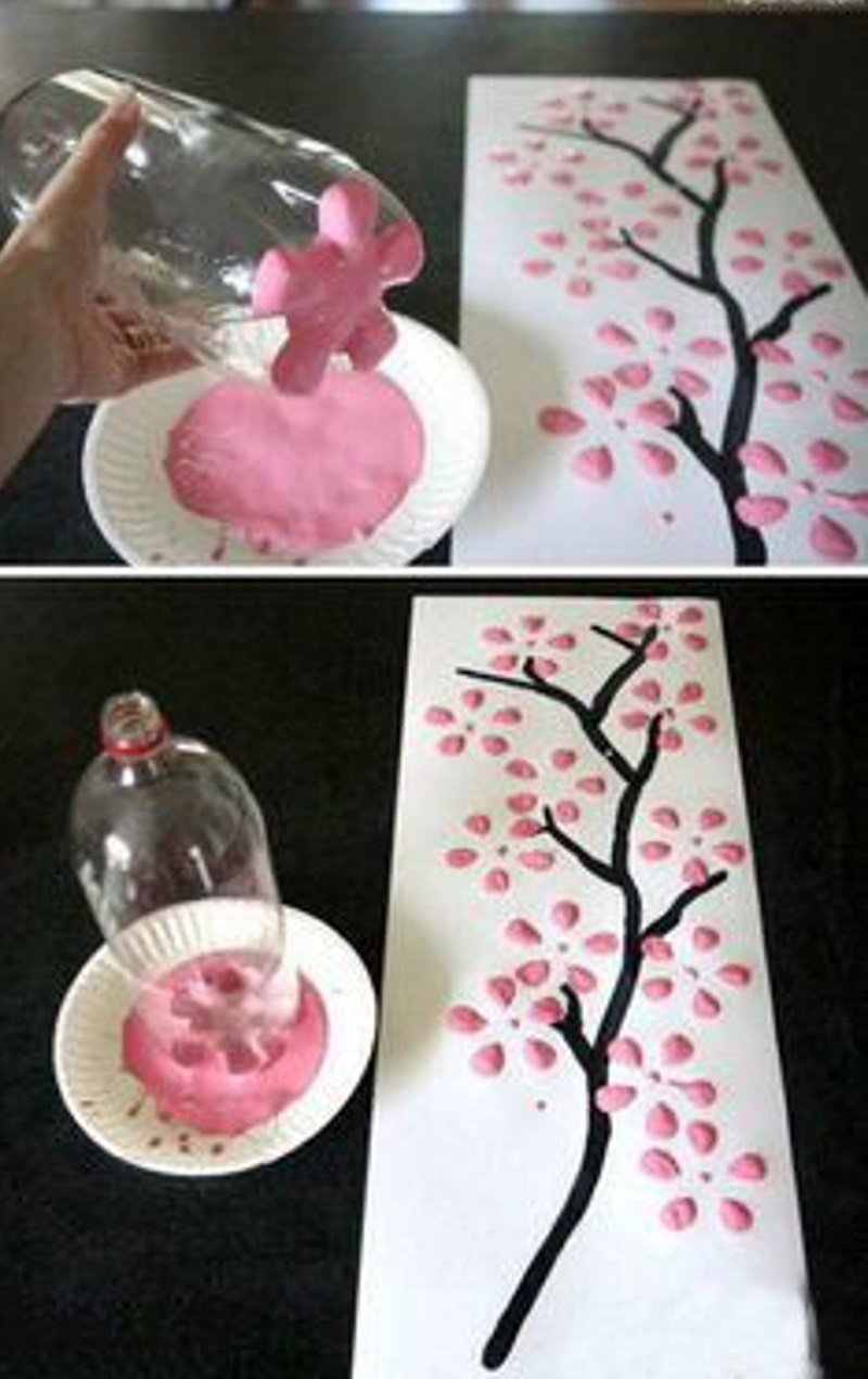 - Botellas de plástico convertidas en un hermoso elemento de decoración.