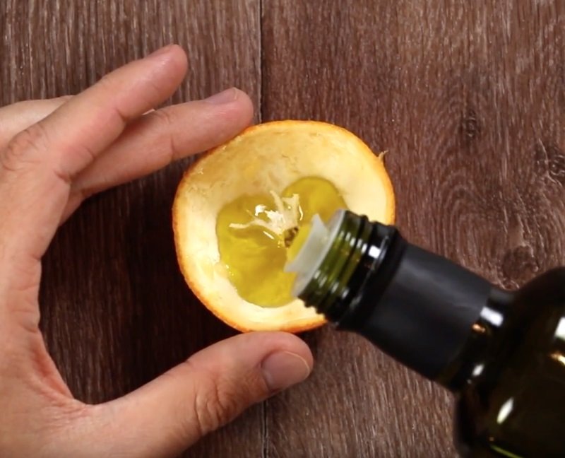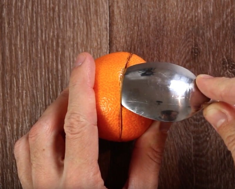 - Con una cuchara, separa con cuidado la pulpa de la cáscara. Ten cuidado: los hollejos debes extraerlos, pero el corazón debes dejarlo, pues conformará la mecha de la vela.