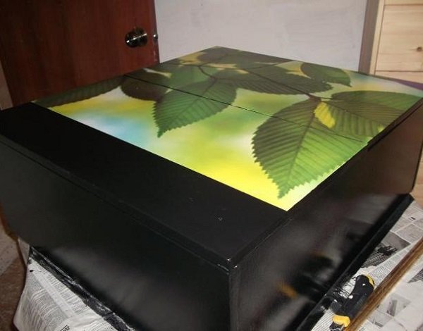 La idea surgió de manera absolutamente inesperada… La señora de la casa, al caminar por el mercado, se topó con un puesto con fotomurales de muchos colores y variados diseños florales. Sin mucho pensar, eligió uno a su gusto, compró el pegamento, la pintura, la laca, los cepillos necesarios y el rodillo.