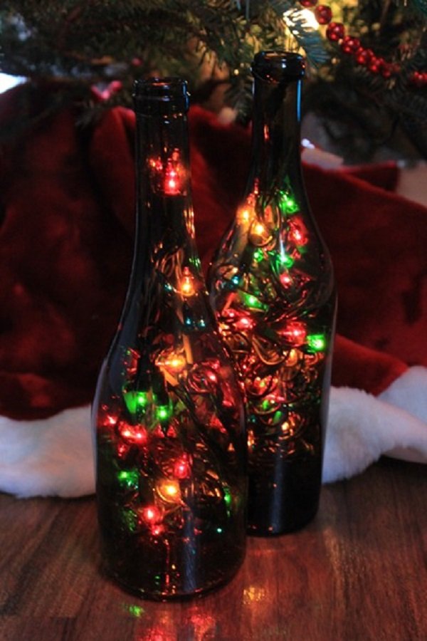 - La guirnalda multicolor dentro de una botella luce aún más interesante que la monocolor.