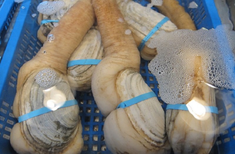 De hecho, se trata de un molusco bivalvo marino, considerado uno de los moluscos más longevos de nuestro planeta, ya que puede vivir 146 años. A pesar de su apariencia bastante inusual, con estas almejas se hace el sashimi más delicado, y se agrega a platos con mariscos.