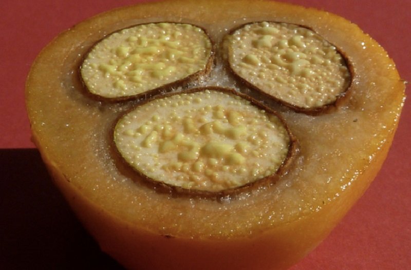 Resulta que así es como se ve el producto, a partir del cual se hacen mermeladas y rellenos para los dulces favoritos de todos. La fruta bacuparí (Garcinia), no parece nada apetitosa, y si la viera en mi cocina, definitivamente la enviaría a la basura, pensando que se trata de algo que salió mal.