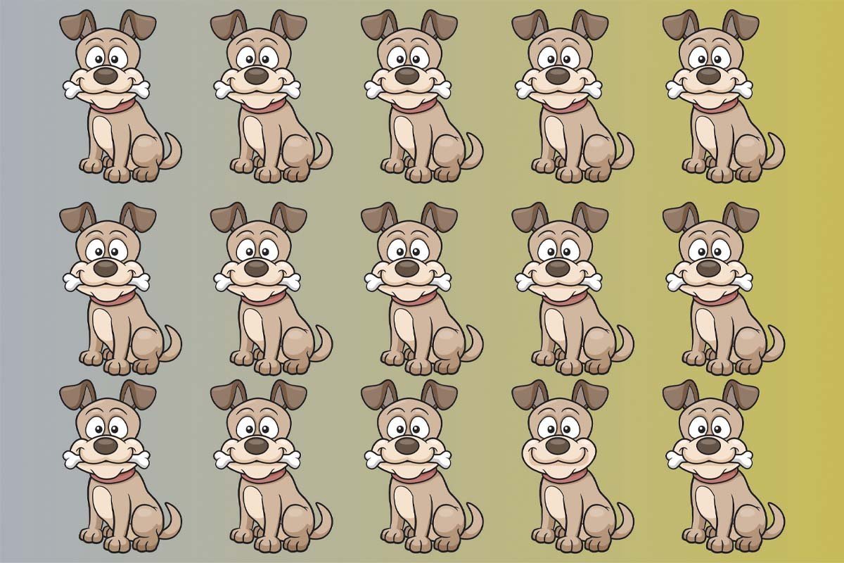 - La siguiente tarea sigue el mismo plan, sólo que ahora delante de no tendrás zapatos, sino lindos perros con los huesos. Tómate tu tiempo y busca un animal sin hueso en la boca. ¿Podrás hacerlo?