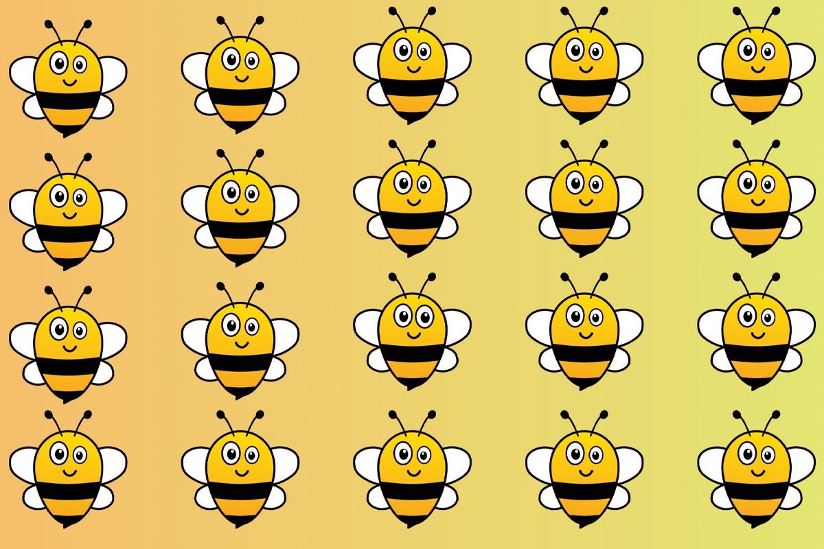 - Si miras las imágenes de cerca, te darás cuenta de que la abeja de la tercera fila tiene los ojos diferentes.