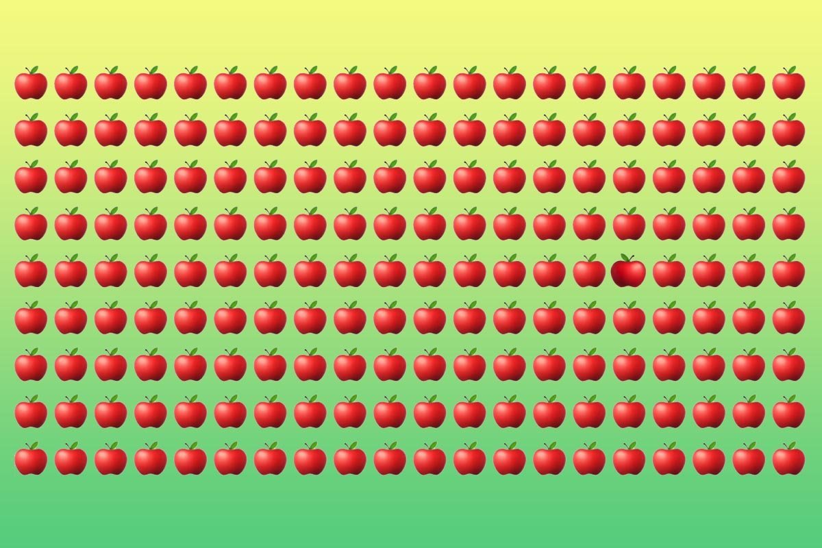 - En la quinta fila de la derecha, la sombra de la manzana cae del otro lado. Era difícil encontrarla, ¿verdad?