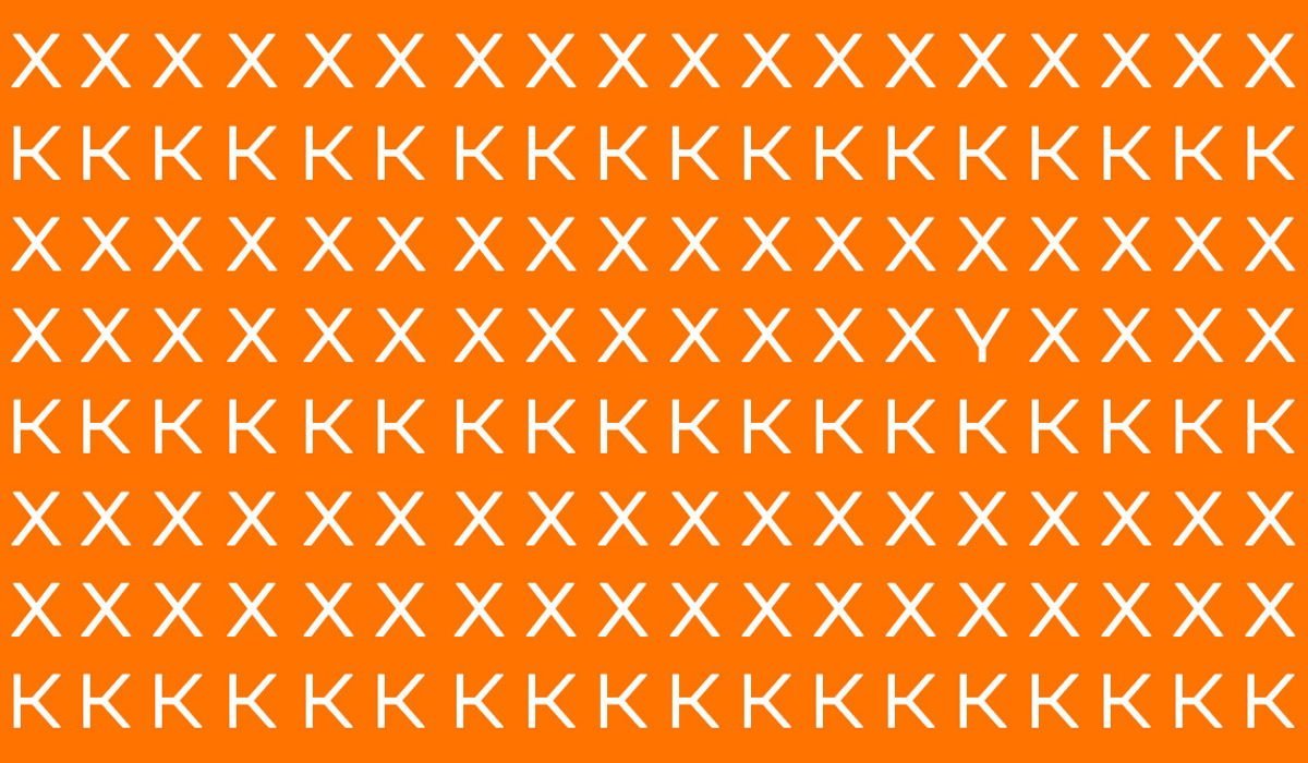 - Hay una letra de más entre las filas de la X y la K. ¿Puedes encontrarla en 20 segundos? Esta tarea es bastante sencilla, así que seguro que te las apañas. Pero, ¿cumplirás el límite de tiempo?