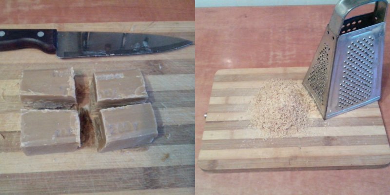 - 200-250 g de jabón para ropa (el más simple, marrón)