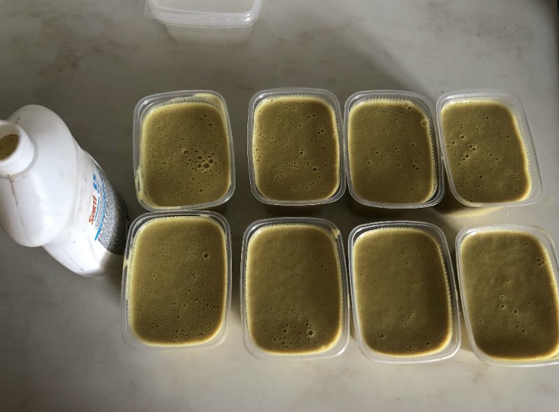 - Vierte la mezcla en recipientes. El agente se espesa después del enfriamiento. Diluye la masa con agua 1: 1 para verter en una botella y utilízala como gel para lavar platos.