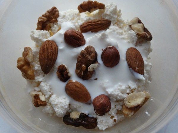 - Queso cottage bajo en grasa con diferentes frutos secos.