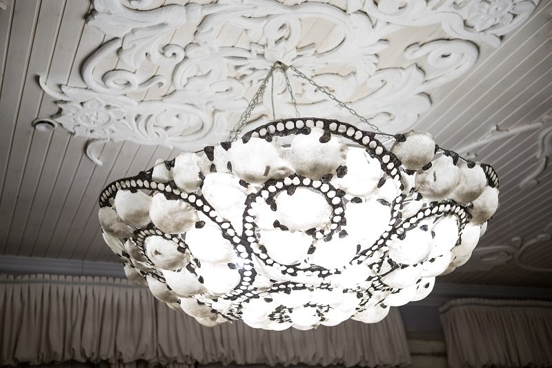 El brillo y la pedrería no enriquecerán el interior. Hubo una vez que todas estas superficies espejadas y pedrería estaban firmemente de moda, pero su tiempo ya pasó. Así que debes dejarlos ir y olvidarlo. El papel tapiz con destellos y pedrería, las cortinas hechas de cuentas y varios adornos ya cayeron en desgracia.