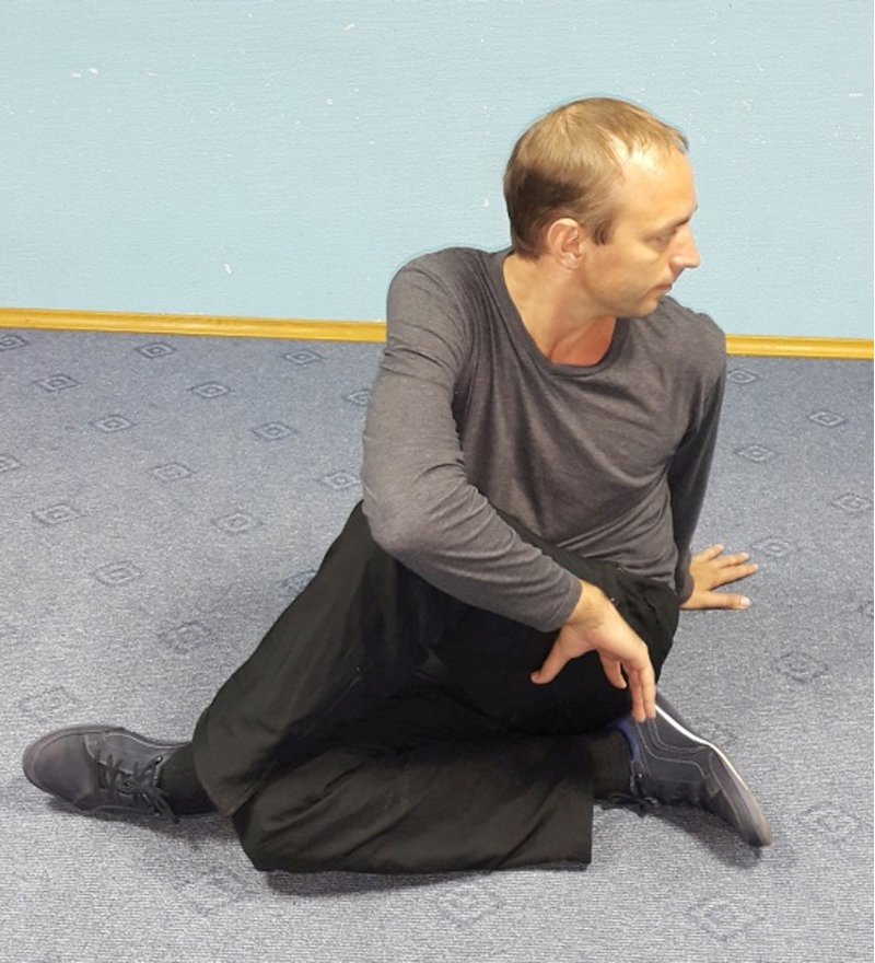 Ejercicio muy útil para fortalecer los músculos de la espalda. Con trastornos de la postura, reumatismo, dolor crónico, no encontrará nada mejor. No será un problema aprenderlo. Toma una posición estática, como se muestra en la imagen. Gira la cabeza en la dirección opuesta a la torsión. Descansa el codo sobre la pierna. Estos trucos ayudarán a aumentar la eficiencia de la ejecución.