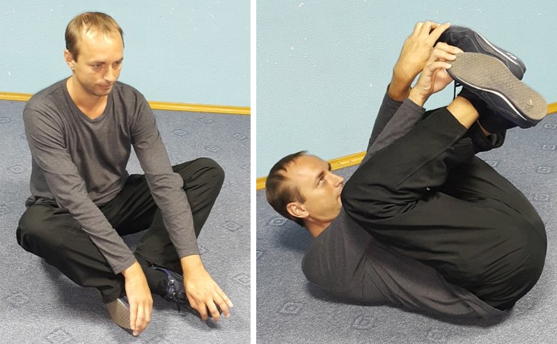 Este es uno de los ejercicios más valiosos del complejo. Perfectamente tonifica, alivia la tensión de la columna vertebral. El método de ejecución es sencillo: siéntate en el suelo «en turco», siempre sobre una superficie dura. Si te produce molestias, utiliza un tapete suave. La espalda debe estar lo más redondeada posible. Inclínate lentamente hacia el piso, rueda sobre su espalda y regresa a la posición inicial. Puedes estirar las piernas, pero luego sujetarte por las espinillas. Hazlo al menos 12 veces.