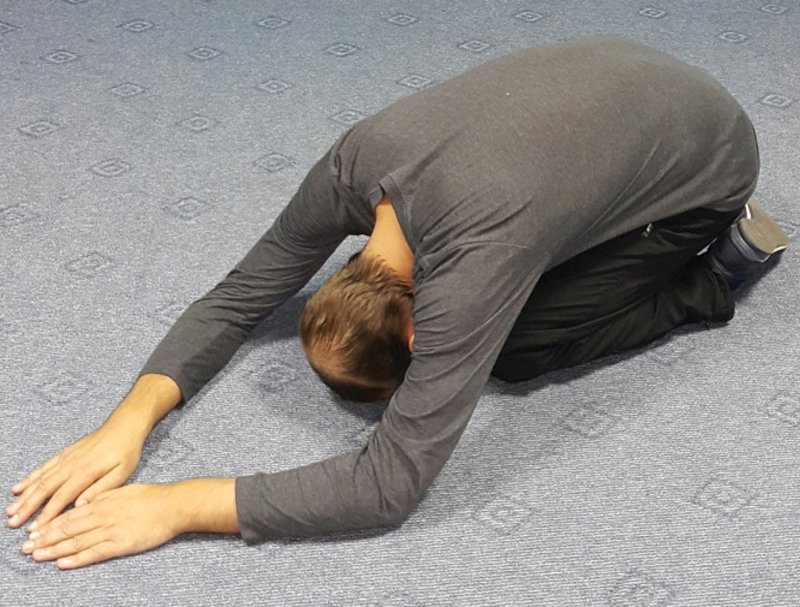 ¡Asegúrate de realizar esta asana después de la «cobra»! Siempre debes compensar la flexión de la columna en la dirección opuesta. El ejercicio mejora la digestión y es eficaz para el dolor de rodilla. Es muy simple de realizar: siéntate suavemente sobre tus pies, sosteniendo tus rodillas con las manos o estirándolas hacia adelante. Espera unos segundos. Después de 8-10 repeticiones, siéntate con la espalda recta.