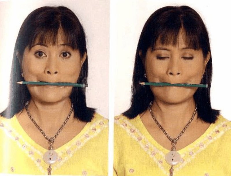 Este ejercicio simple fortalecerá mejor los músculos de las mejillas, los labios y el cuello. Pon un lápiz entre tus labios contraídos. Luego inhala y desliza el lápiz entre tus labios, empujando tu barbilla hacia adelante. Levanta la barbilla y sonríe, tirando de tus mejillas. Mantén esta posición durante 2 segundos, luego relaja las mejillas y la barbilla durante 2 segundos y comienza de nuevo. Recuerda, ¡El lápiz se queda entre los labios! Haz 20 repeticiones pausadas.