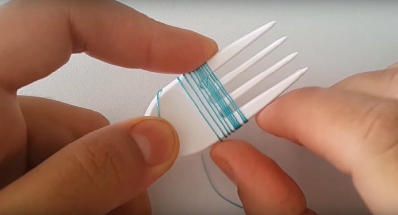 - Corta 50 cm de hilo y empezar a enrollarlo alrededor del tenedor.
