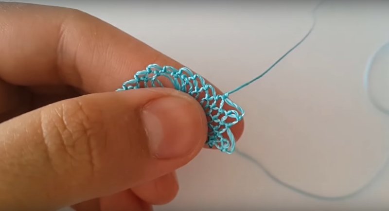 - Dale la vuelta al abanico y comienza a hacer otra fila de los mismos nudos.